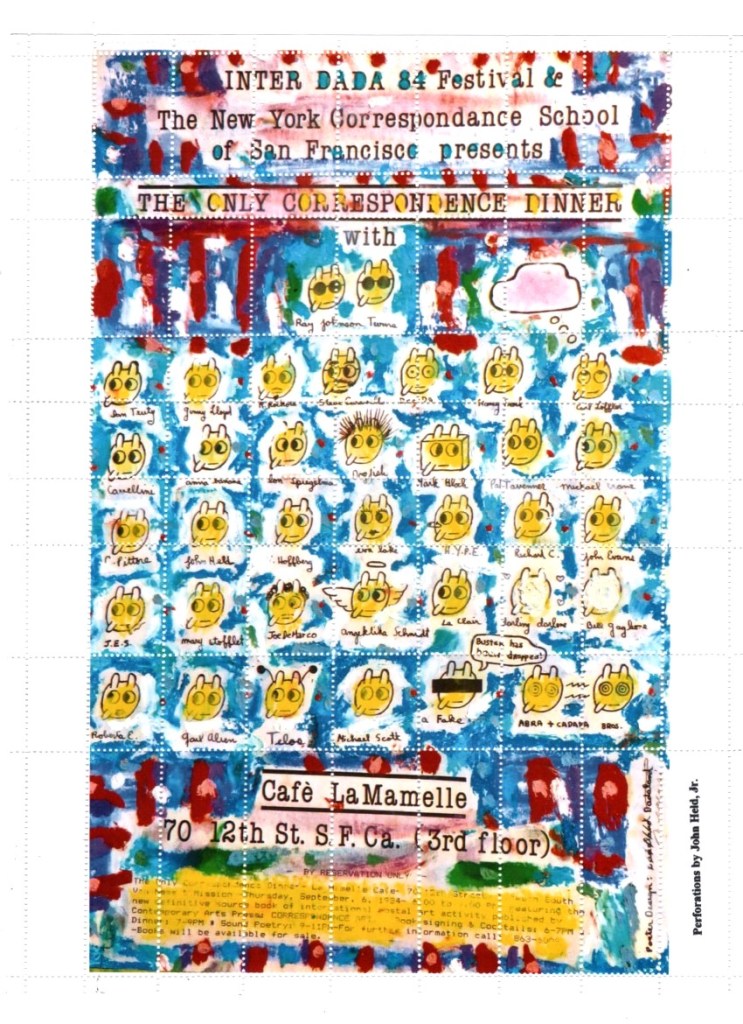 “John Held Jr. è nato a New York nel 1947. Held fa Mail Art e mantiene una cerchia di contatti in tutto il mondo dal 1976. Ha contribuito a innumerevoli progetti e spettacoli che abbracciano più di tre decenni. La sua opera d’arte postale utilizza timbri in gomma, artistamps, collage e tecniche di copy art, ed è anche un noto artista di performance […]”