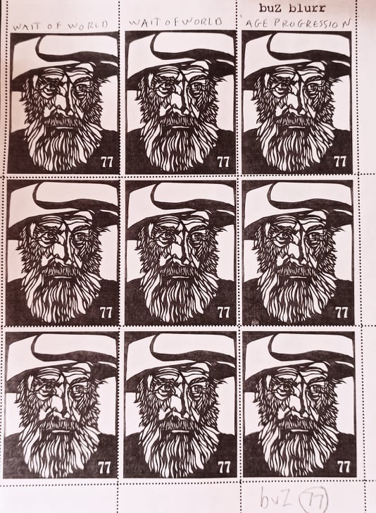 BuZ blurr alias Colossus of Roads alias Robert Russel alias Russel Butler wurde 1943 im US Staat Arkansas geboren. Heute bezeichnet er seinen Wohnort als Surrealville oder Fürstentum vom buZ, der liegt in Gurdon, Arkansas. Im Hauptberuf war Russel Butler als Eisenbahner tätig. Anfang der 1970er Jahre fing er damit an, Waggons, die er rangierte, mit Kritzeleien zu markieren. Seine Waggons, die mit Graffitis oder Tags versehen waren, gingen auf die transkontinentale Reise und wurden von ihm selbst dokumentiert. Anfang der achtziger Jahre begann buZ mit Mail Art. In New York fand er viele Dada- und Mail Art-Freunde, auch Ray Johnson. buZ entwickelte einen eigenen Stil, seine schwarz-weißen Porträts sind unverwechselbar.