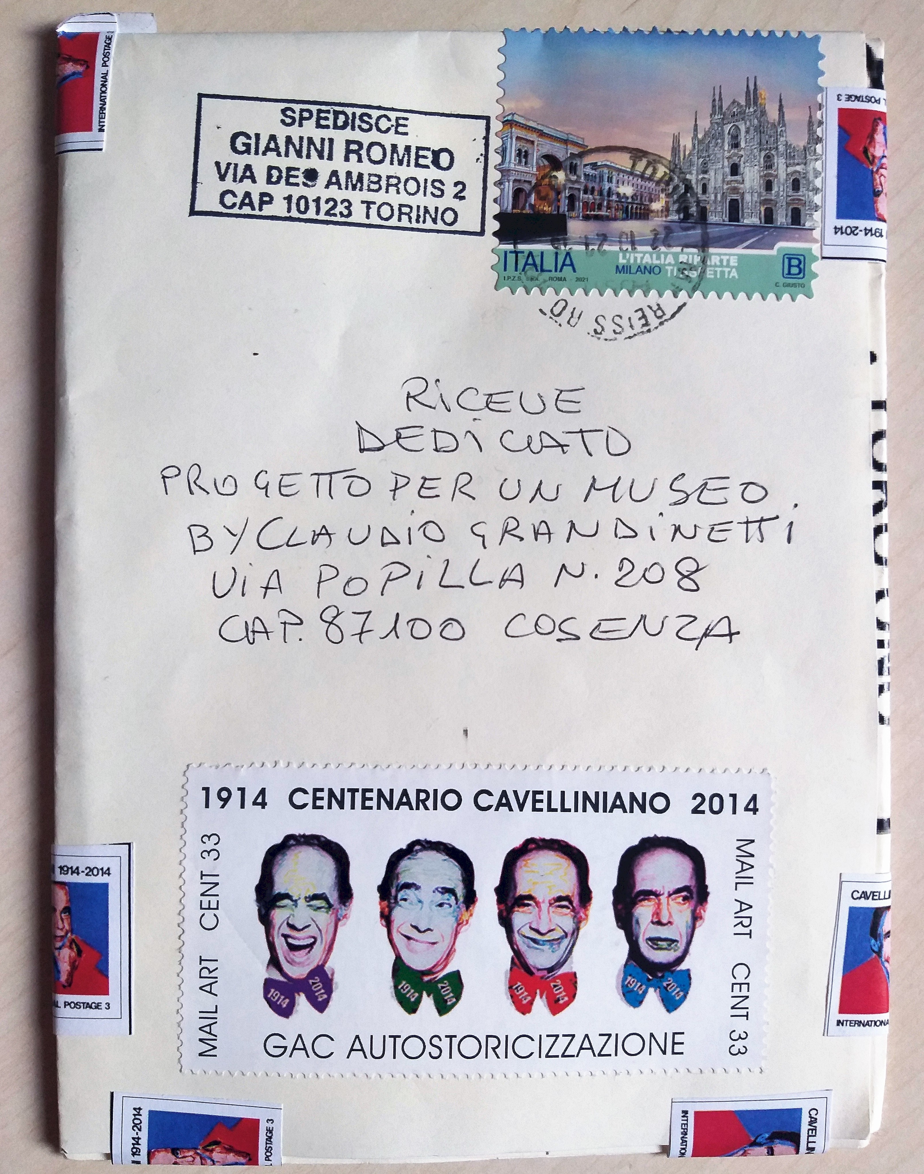 Oggi è arrivata l’opera di Gianni Romeo. Gianni Romeo era presente nell’ A.I.M.A. (Archivio Internazionale Mail Art).