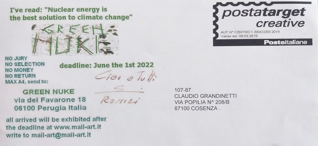 Oggi è arrivata una cartolina di Morice Marcuse. Morice Marcuse era presente nell’ A.I.M.A. (Archivio Internazionale Mail Art).
