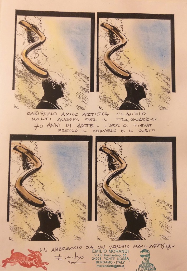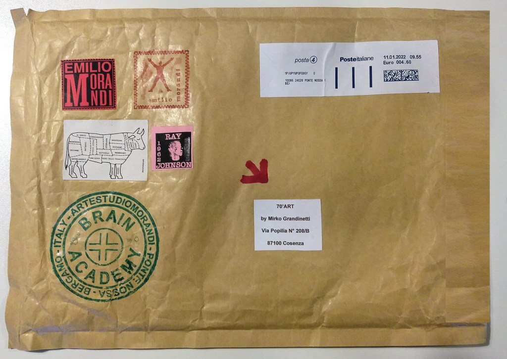 Oggi è arrivata l’opera di Emilio Morandi per 70’ART. Emilio Morandi era presente nell’ A.I.M.A. (Archivio Internazionale Mail Art).