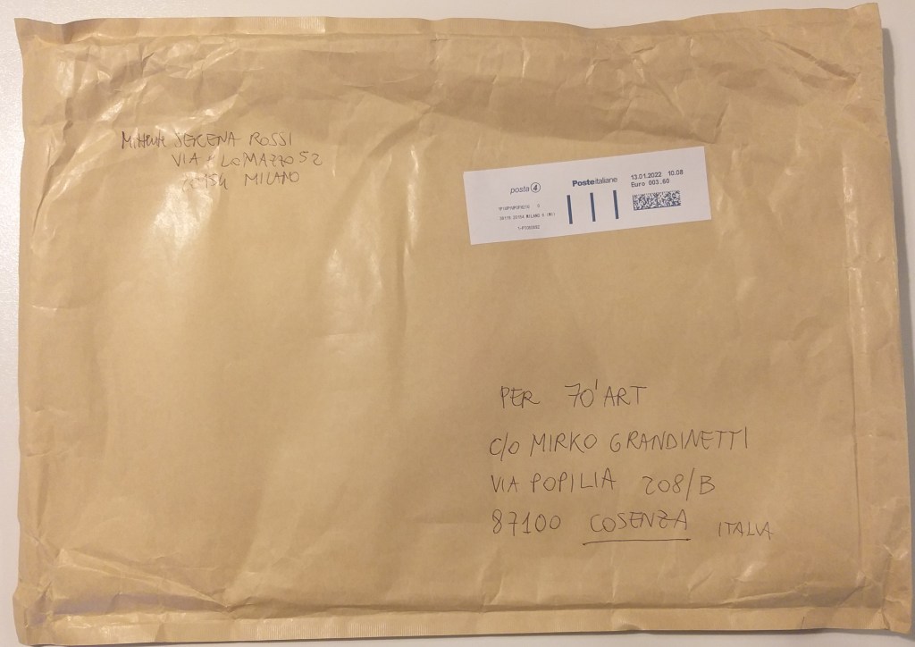 Oggi è arrivata l’opera di Serena Rossi per 70’ART. Serena Rossi era presente nell’ A.I.M.A. (Archivio Internazionale Mail Art).