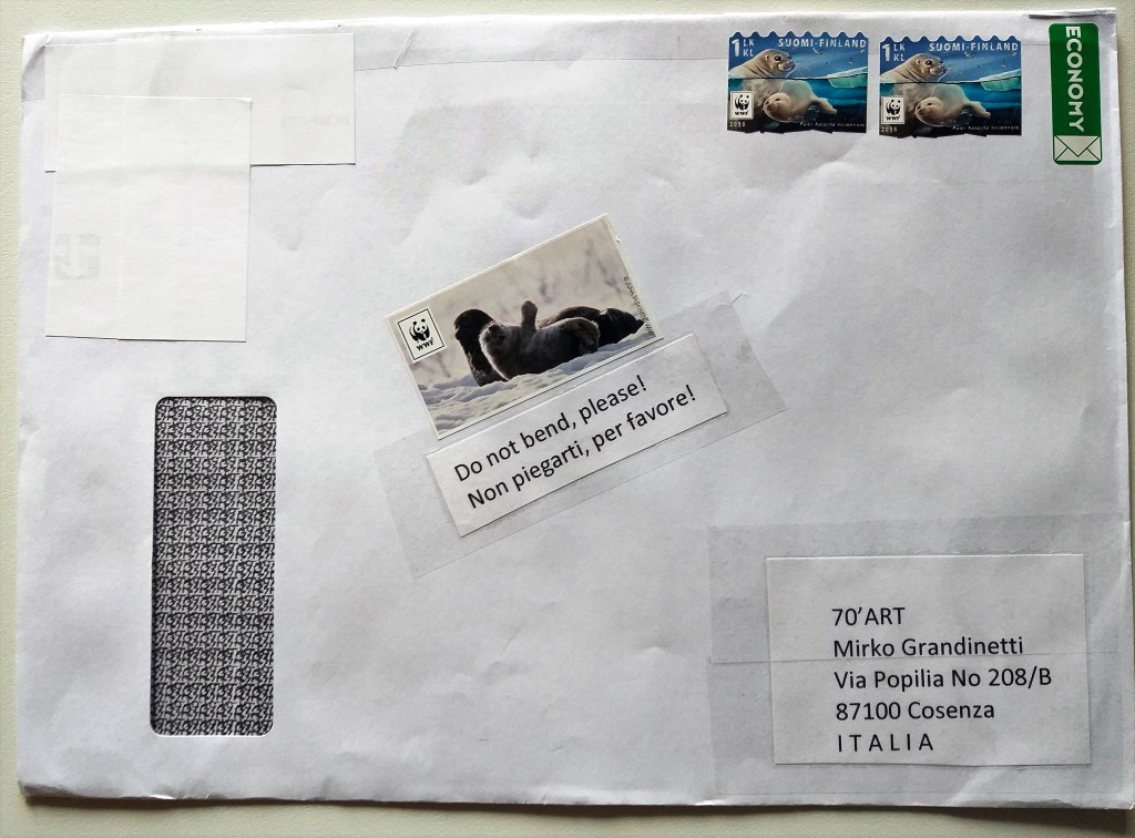 Oggi è arrivata l’opera di Anja Mattila Tolvanen per 70’ART. Anja Mattila Tolvanen era presente nell’ A.I.M.A. (Archivio Internazionale Mail Art) e nel M.I.M.A. (Museo Internazionale Mail Art).
