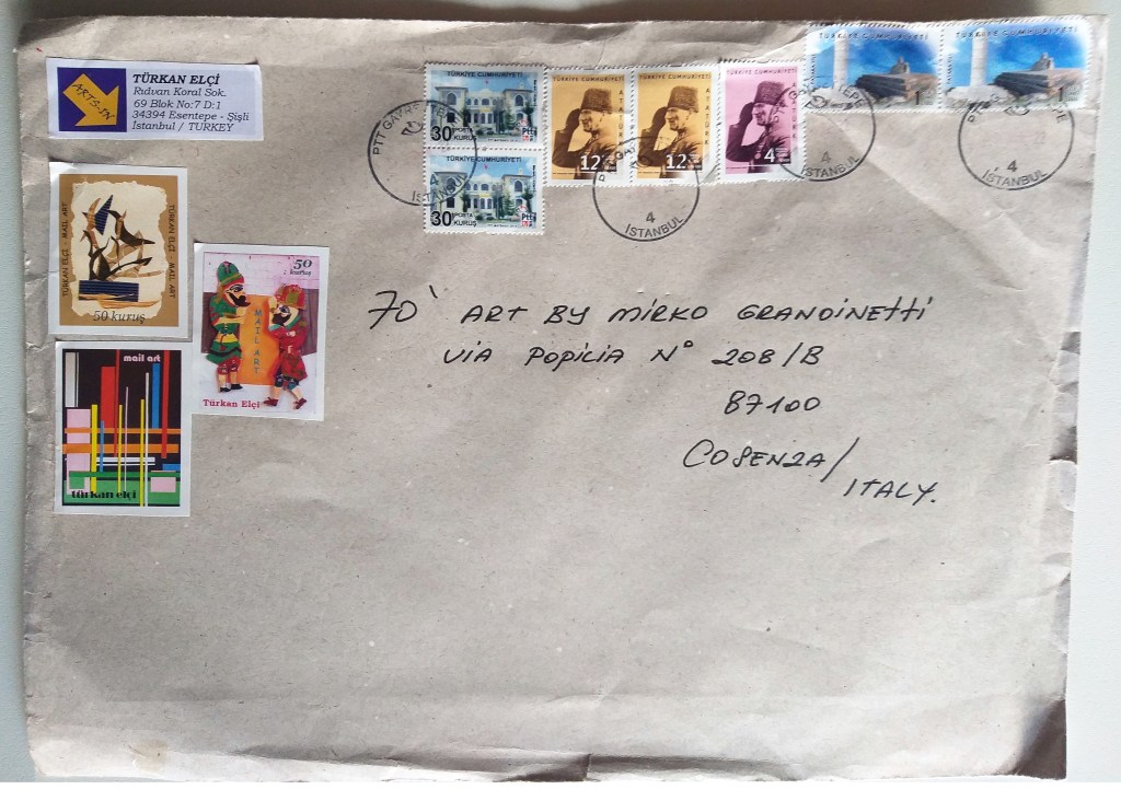 Oggi è arrivata l’opera di Turcan Rlcin per 70’ART. Turcan Elcin era presente nell’ A.I.M.A. (Archivio Internazionale Mail Art).