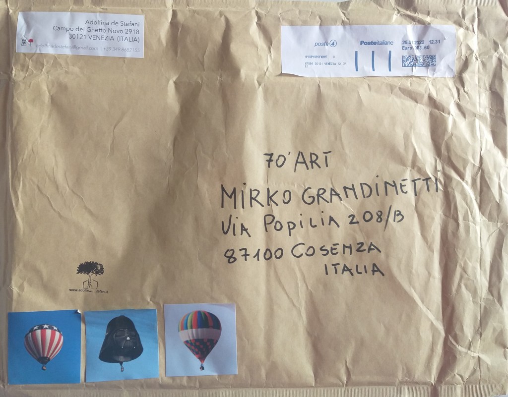 Oggi è arrivata l’opera di Adolfina de Stefani e Antonello Mantovani per 70’ART. Adolfina de Stefani era già presente nell’ A.I.M.A. (Archivio Internazionale Mail Art).