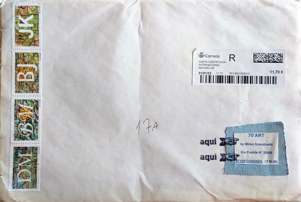 Oggi è arrivata l’opera di J. M. Calleja per 70’ART. J. M. Calleja era già presente nell’ A.I.M.A. (Archivio Internazionale Mail Art) e nel M.I.M.A. (Museo Internazionale Mail Art).