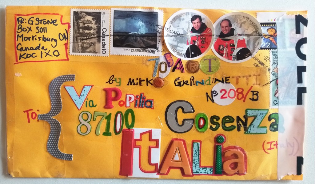 Oggi è arrivata l’opera di Georgie Stone per 70’ART. Georgie Stone non era presente nell’ A.I.M.A. (Archivio Internazionale Mail Art).