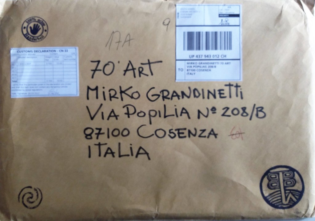 Oggi sono arrivate le opere di Kardo Kosta per 70’ART. Kardo Kosta era già presente nell’ A.I.M.A. (Archivio Internazionale Mail Art) e nel M.I.M.A. (Museo Internazionale Mail Art).