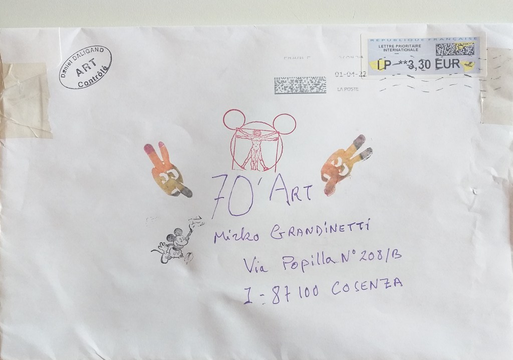 Oggi è arrivata l’opera di Daniel Daligand per 70’ART. Daniel Daligand era già presente nell’ A.I.M.A. (Archivio Internazionale Mail Art) e nel M.I.M.A. (Museo Internazionale Mail Art).