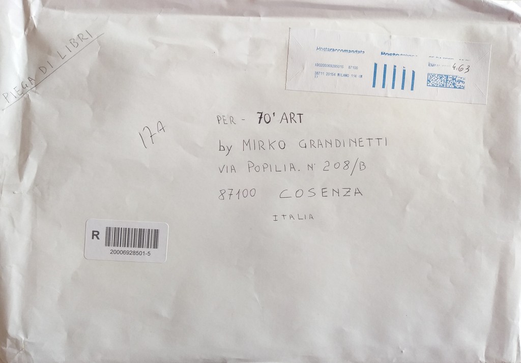Oggi è arrivata l’opera di Pino Lia per 70’ART. Pino Lia era già presente nell’ A.I.M.A. (Archivio Internazionale Mail Art).