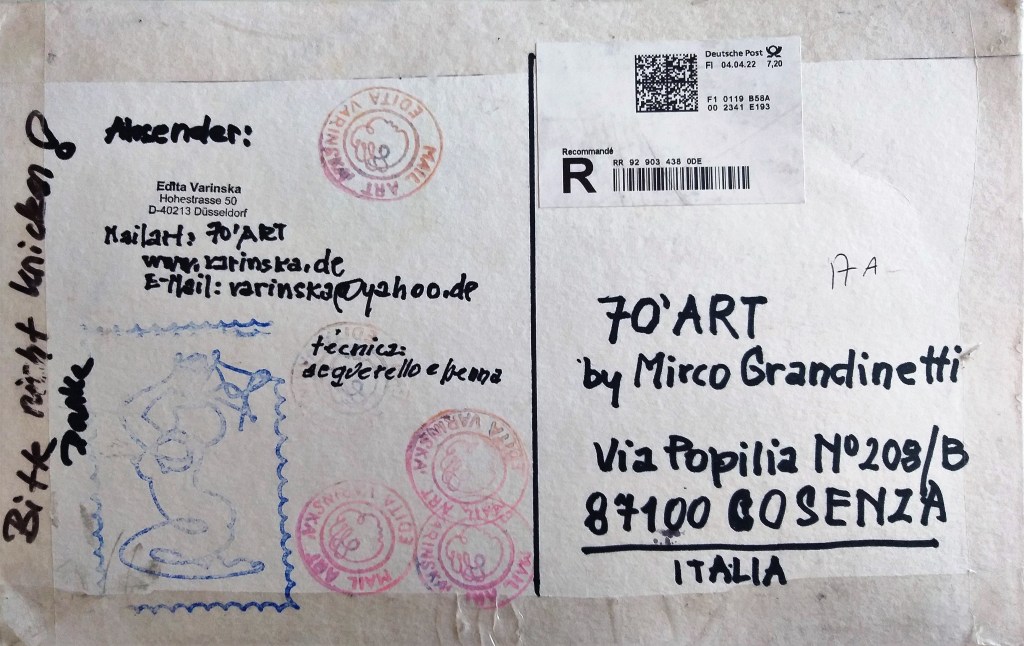 Oggi è arrivata l’opera Edita Varinska per 70’ART. Edita Varinska era già presente nell’ A.I.M.A. (Archivio Internazionale Mail Art).