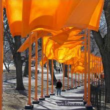 “The gates”, in Central Park a New York vedrà il posizionamento di 11 mila portali, con stoffe gialle dello steso colore degli alberi d’autunno. Legato all’estate e ai suoi colori è il progetto in Colorado, avviato nel ’92. Quindici km di tela sospesa sul fiume Arkansas permetteranno un gioco legato alla visione-non visione del paesaggio.