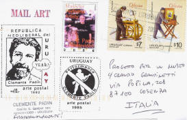 Born on octuber 8, 1939 (october 3, 2025) in Lascano, Uruguay. Poet, artist and graphic designer, performancer, videoartist, multimedia and netartworker. Graduated in Letras Hispanas of University of The Republic, Uruguay. Director of the art magazines Los Huevos del Plata (1965-1969); OVUM 10 and OVUM (1969-1975) and Participación (1984-1986). Author of 18 books edited in Francie, Germany, Holanda, Italie, Venezuela, United States and Uruguay. Has participated in 197 group show and more of 1.500 Mail Art expositions around the world since 1971. One solo show in United States, Italie, Corea, Argentina, Uruguay, Germany, Spain, Belgic and Japon. Some of recognition it has receive are special invitated in the XVI Bienal of San Pablo, Brazil, 1981; Special Mention in I Bienal de La Habana, Cuba, 1984. The Art and Letters Academy of Germany le concedió una beca en 1984, etc. Since La Poesía Debe Ser Hecha por Todos, Montevideo, Uruguay 1970, ha realizado docenas de presentaciones y performances en todo el mundo. Se han publicado sus notas y artículos en docenas de revistas y publicaciones traducidas al inglés, portugués, francés, italiano, húngaro, holandés, alemán y ruso y ha participado en múltiples eventos en Internet desde 1992. Ha participado personalmente en encuentros relacionado con el arte y la poesía, since Exposición de Proposiciones a Realizar, Buenos Aires, 1971 and XVI Bienal de San Pablo, Brasil, 1981,until XI International Congresse of Estetic, Nottingham, Inglaterra, 1988; Acciones, Chester Spring, Filadelfia, EE UU. 1989; XXXIX Congreso SALALM, Salt Lake City, Utah, EE.UU. 1994; V International Bienal of Visual/ Experimental Poetry, México City, México, 1996, Eye Rytmes, Edmonton, Alberta, Canadá 1997; Intersignos, San Pablo, Brasil 1998; VIII International Festival of Poetry, Medellín, Colombia 1998, International Biennale of Poetry, Belo Horizonte, Brasil 1998, and much more.