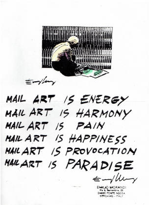 Pittore, operatore di installazioni, video artista, performer. Curatore indipendente di Art Events. Presente ad importanti incontri Art Action in Italia ed all’estero. Fondatore del gruppo PULS /PLUS Gruppo di ricerca visiva. Collabora con l’archivio sonoro olandese V.E.C. di Maastricht. Dirige la galleria Artestudio Morandi di Ponte Nossa a Bergamo. Spazio aperto questo ad artisti che fanno ricerca e sperimentazione. Promuove e partecipa attivamente a progetti internazionali di Mail Art. Curatore del International Mail Art Congress 1992 in Ponte Nossa. E’ anche un video-artista ed è presente dal 1983 a numerose rassegne internazionali. Curatore del 9° Neoist Festival a Ponte Nossa. Ideatore, curatore del Festival Azioni Performative Performedia dal 1990. Ideatore con Guglielmo Di Mauro e performer del progetto Brain Academy Apartment Alla 50° Biennale di Venezia 2003. Ideatore con altri artisti del Movimento Zerotre Arte Effimera. Ideatore, curatore con Claudio Perez e Raul Manrique del Centro de Arte Moderno del festival Performance en el centro a Madrid dal 2005. Dal 1990 la sua abituale collaboratrice nelle performances, per la parte fotografica e curatrice dell’archivio è la moglie Franca. Vive ed opera a Ponte Nossa Bergamo e Venezia.