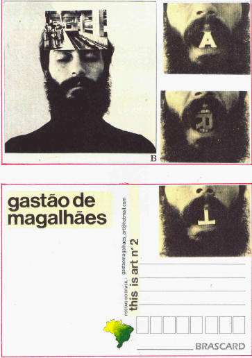 Gastão de Magalhães è nato il 27/03/1953 a San Paolo del Brasile. E’ un’artista multidisciplinare. Considerato un pioniere della poesia visiva opera in linguaggi diversi che spaziano dall’Arte Concettuale alla Video Arte, alla Mail Art, alla Performanche. Espone fin dal 1971 in mostre personali, collettive, e progetti di Mail Art internazionali.