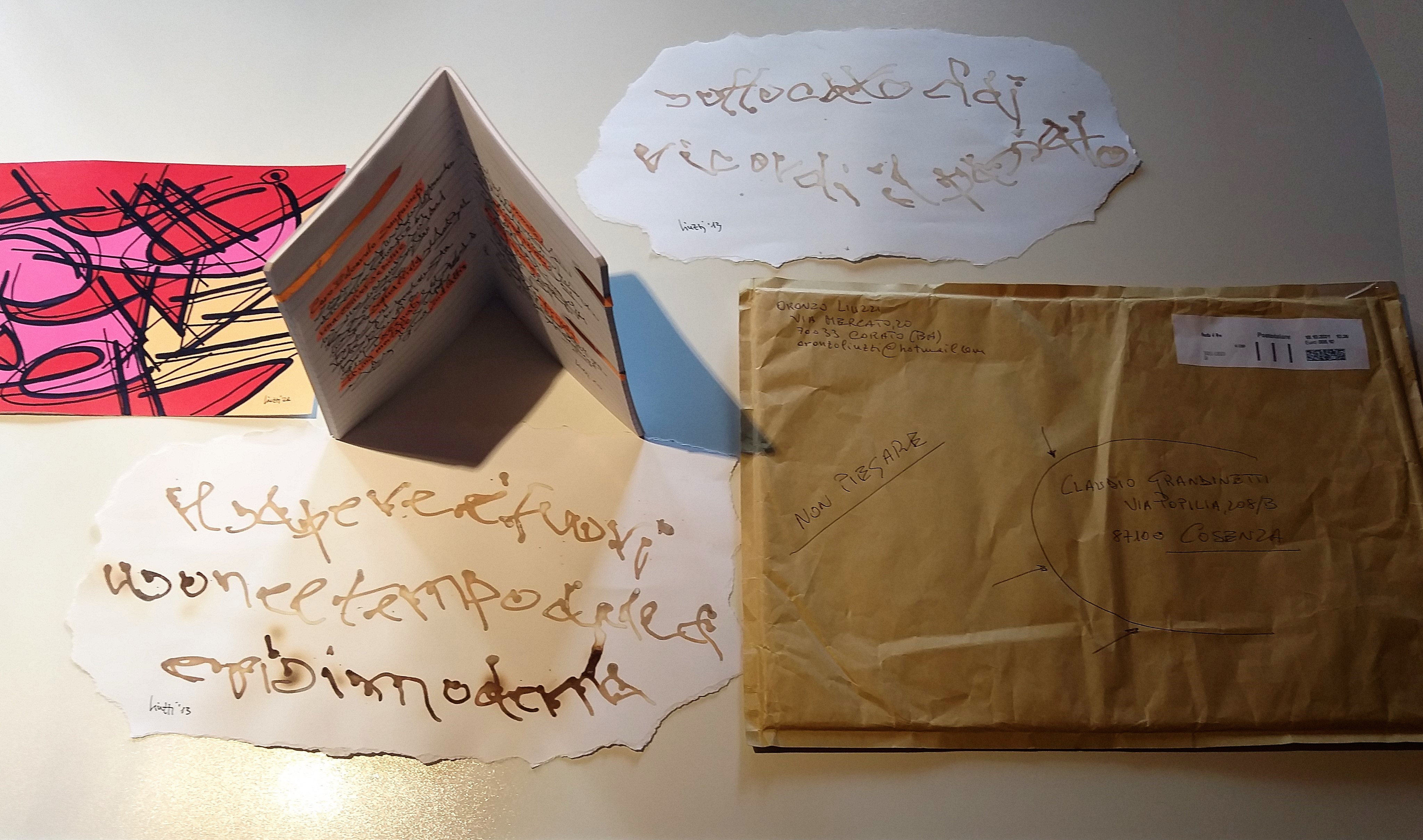 Oronzo Liuzzi (Fasano, Brindisi, 1949), Vive a Corato (BA) è artista poliedrico, vive a Corato (BA). Laureato in Filosofia Estetica all’Università di Bari, poeta e performer, ha pubblicato trenta libri tra poesia e narrativa. Ha esposto in numerosi musei e gallerie nazionali e internazionali e in varie edizioni della Biennale di Venezia. Alcune delle sue opere fanno parte delle collezioni: Visual Poetry in Europe di Luciano Benetton, Archivio di Nuova Scrittura al MART di Trento e al Museion di Bolzano, Biblioteca Alexandrina di Alessandria d’Egitto e di recente al M.I.M.A. Museo Internazionale Mail Art di Cosenza.